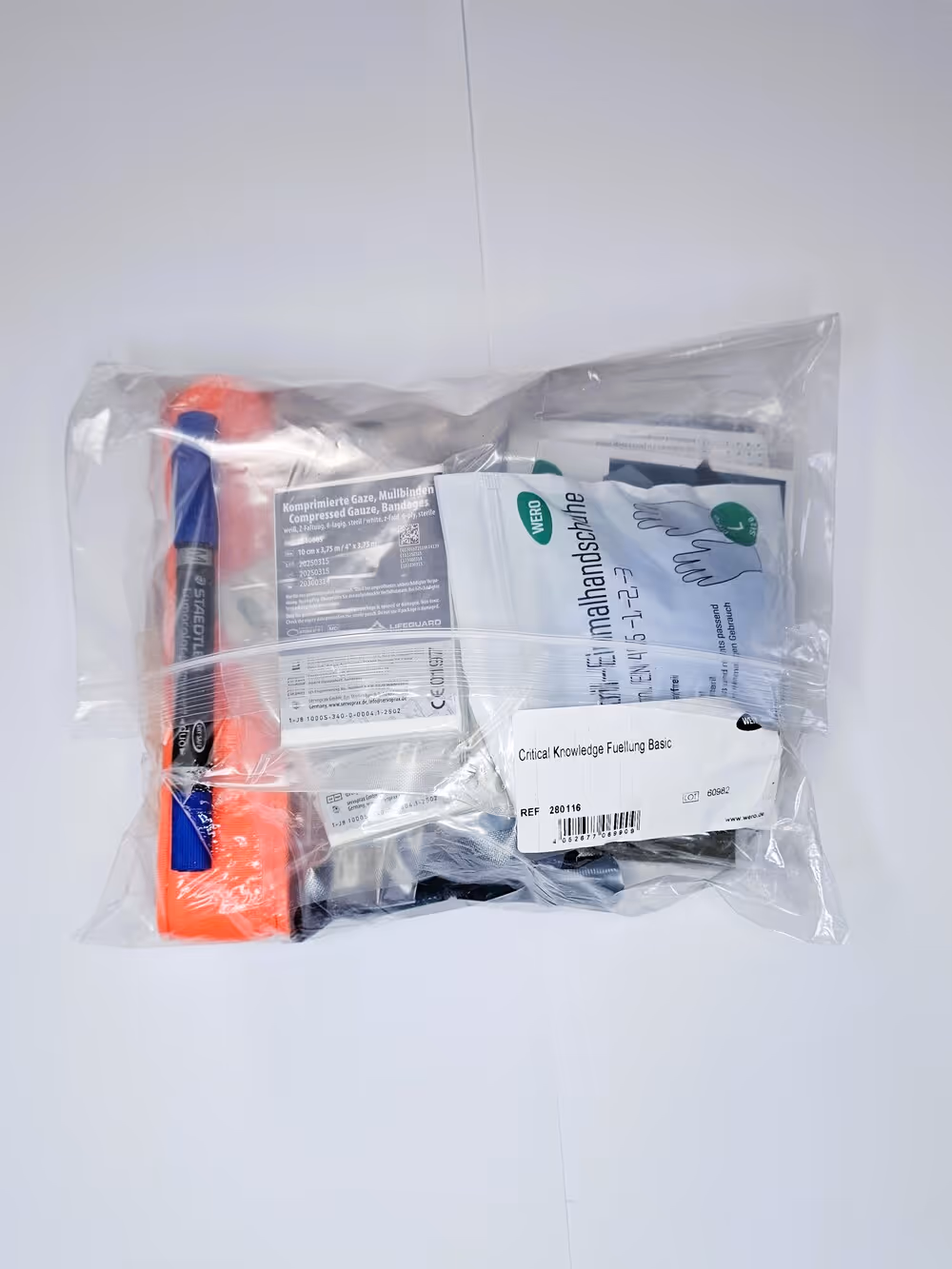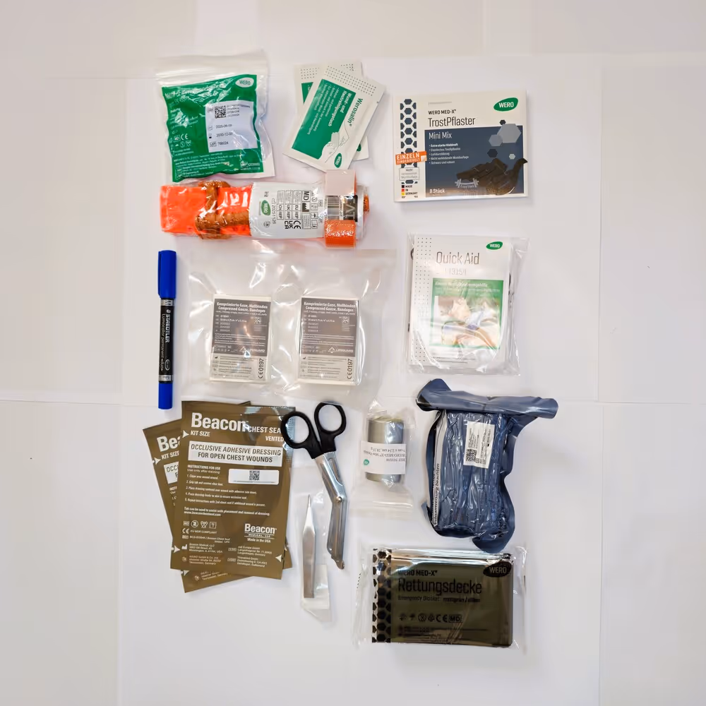 Dieses Erste-Hilfe-Set wurde entwickelt, um grundlegende Notfallversorgung in verschiedenen Szenarien zu unterstützen. Wir empfehlen, das Set im Rahmen eines Trainings zu üben, um sich mit seinem Inhalt und seiner Anwendung vertraut zu machen.